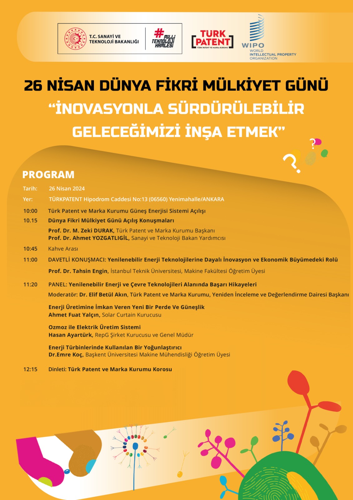 Kurumumuz tarafından; 26 Nisan Dünya Fikri Mülkiyet Günü kapsamında gerçekleştirilecek etkinlik programı aşağıda yer almaktadır.