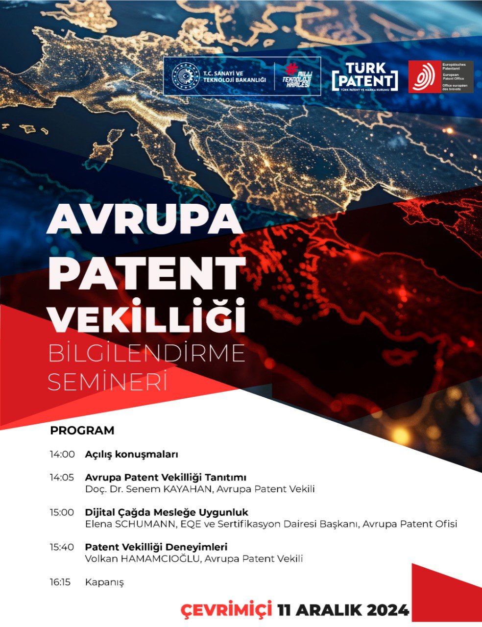 Türk Patent ve Marka Kurumu (TÜRKPATENT) ile Avrupa Patent Ofisi (EPO) iş birliğiyle, Avrupa Patent Vekilliği Bilgilendirme Semineri gerçekleştirilecektir.