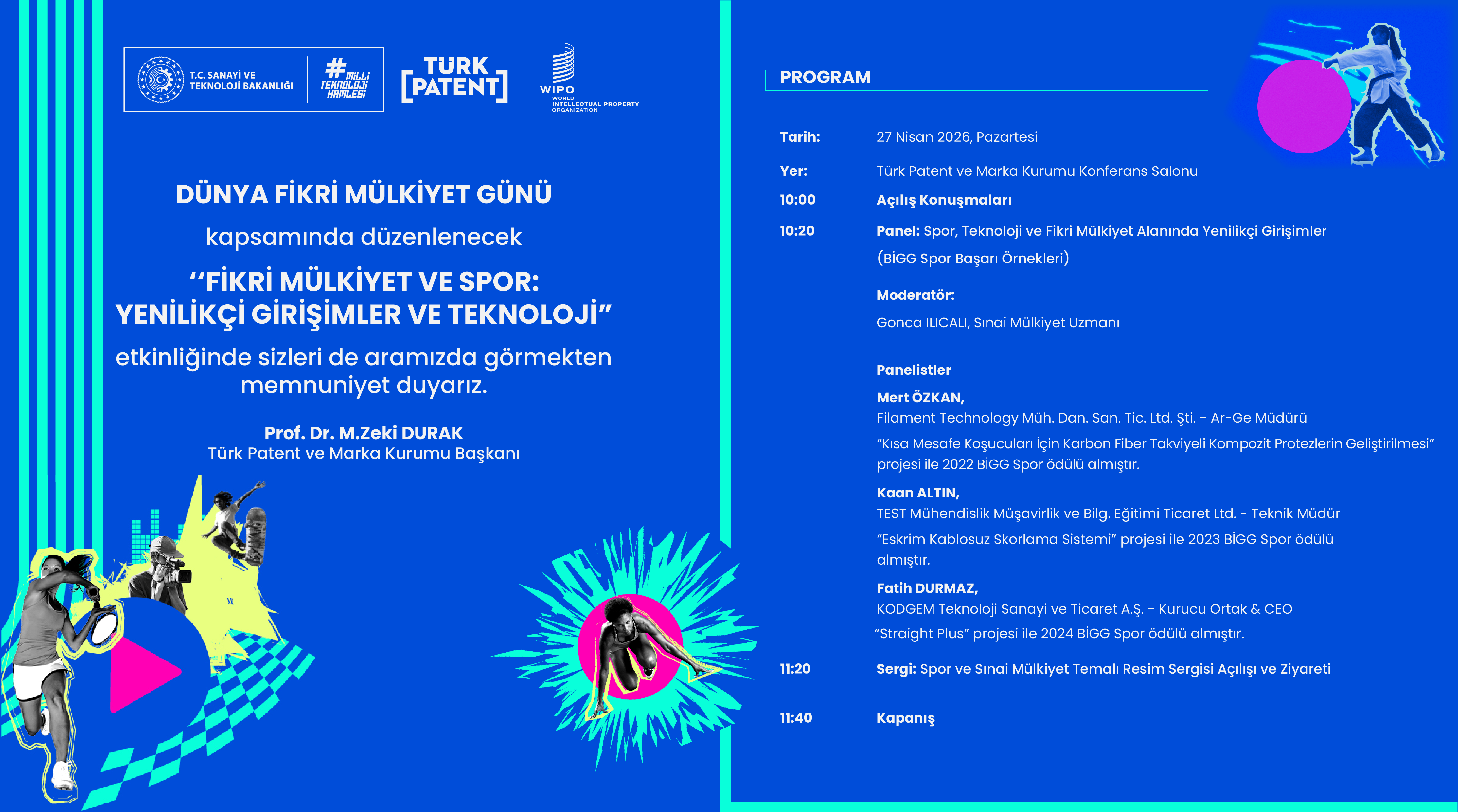 Kurumumuz tarafından, Dünya Fikri Mülkiyet Günü kapsamında 27 Nisan 2026 Pazartesi günü gerçekleştirilecek etkinlik programı aşağıda yer almaktadır.