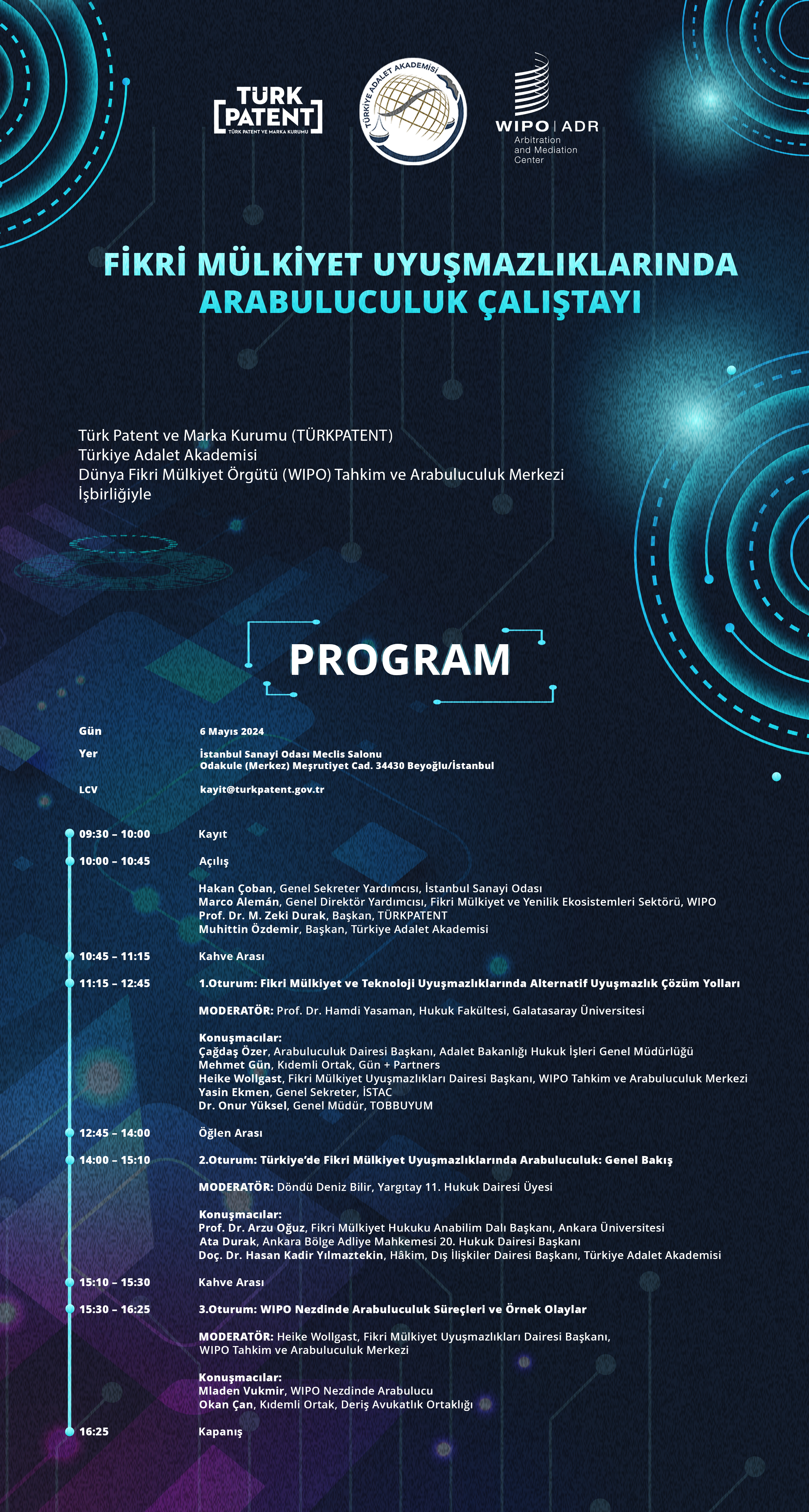 Türk Patent ve Marka Kurumu (TÜRKPATENT), Dünya Fikri Mülkiyet Örgütü (WIPO) ve Türkiye Adalet Akademisi iş birliğiyle;